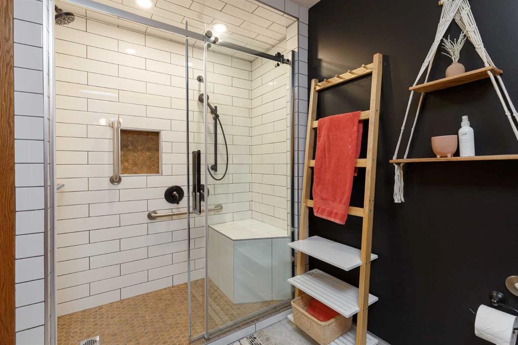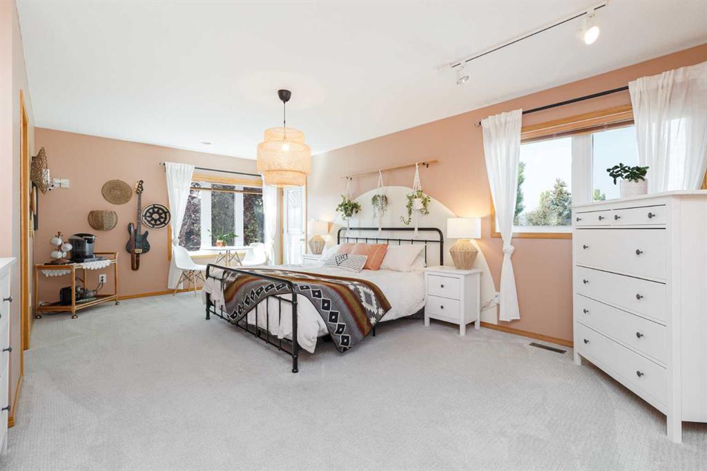 Indulge in premier lakeside living within Sundance! This expansive residence encompasses over 3800 sqft, boasting 4+2 bedrooms and 5 bathrooms. Immerse yourself in the enchantment of lakeside living while reaping the rewards of an income-generating illegal basement suite, contributing $1,600+ monthly. The main level unfolds with a majestic foyer, seamlessly connecting inviting living and dining spaces, and an updated kitchen adorned with a stylish chevron-tiled backsplash and modern stainless-steel appliances. French patio doors unveil a covered deck, accompanied by a vinyl pergola and hot tub in the backyard. The family room showcases a wood-burning fireplace and built-in bookcases, while a 4th bedroom/office and renovated 3-piece bathroom complete this level. A WHEELCHAIR LIFT is located in the Garage, along with a main floor bedroom, and main floor full bathroom with grip bars, this home is great for all family members!