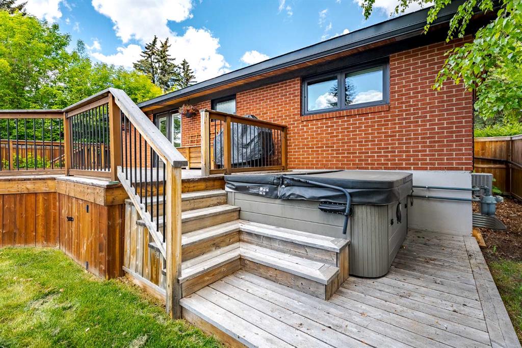 Step outside to a custom-built cedar deck — ideal for relaxed gatherings — framed by established trees and low-maintenance landscaping. The large yard also offers mature raspberry bushes, saskatoon berries, a plum tree, and a crab apple tree — perfect for those who enjoy a bit of homegrown bounty. Additional highlights include a double detached garage (fully insulated; heat ready!), strong mechanical systems, and a comprehensive (to the studs) renovation completed 12 years ago. There is even AC and a hot tub (negotiable)! Exposed aggregate walkways complete the backyard space, and the electrical line was even buried for better deck enjoyment.